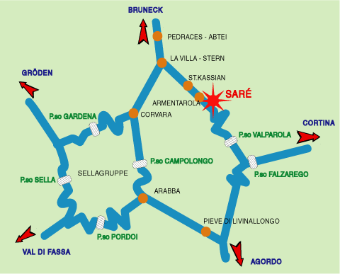 (SS 242d) durch das Grödental. Nach dem Grödnerjoch gelangen Sie nach Kolfuschg